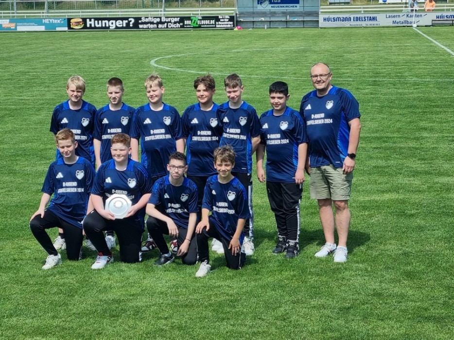 Anschließend wurde der D2 für ihren Staffelsieg in der 4.Kreisklasse geehrt. Neben Urkunde, Schale und Medaillen erhielten die Mannschaften noch Getränke und einen Pommesgutschein beim "Vereinsimbiss".