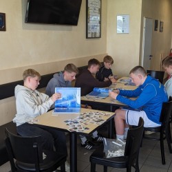 Gleich darauf waren die Tische belegt, dort wurden die Päckchen geöffnet, sortiert, eingeklebt und getauscht.