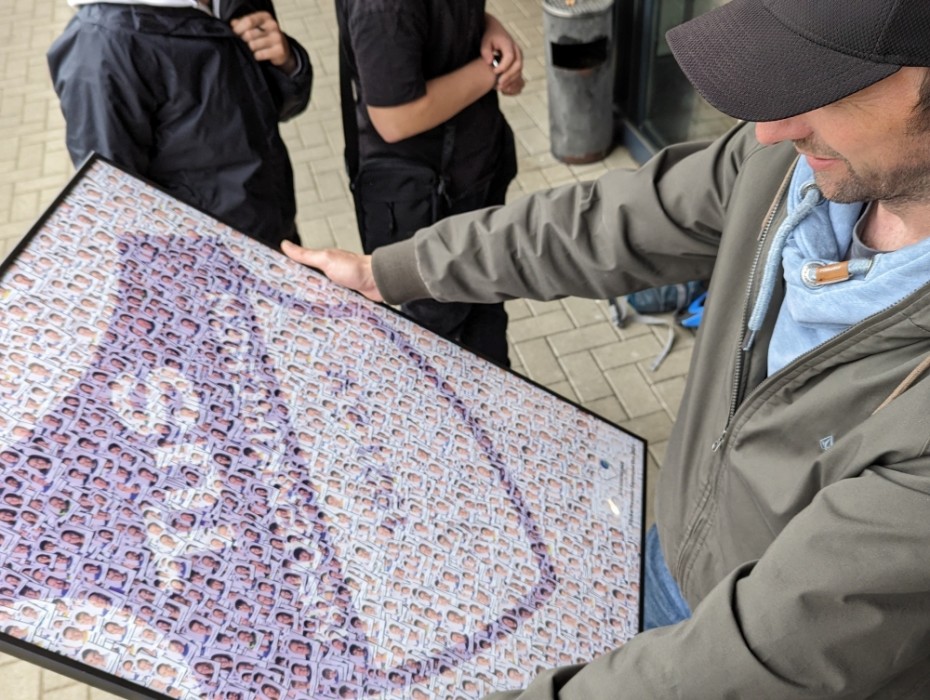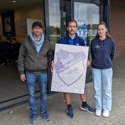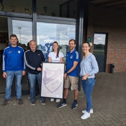 Carina vom Team der Stickerfreun.de überreichte den anwesenden Vorstandsmitgliedern eine gerahmte Collage mit den Stickern.