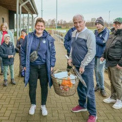 Die erste Etappe führte bis zur Gaststätte Schützenhof Taubke-Westerhaus. Dort konnten sich die Teilnehmer mit Kaffee, Kuchen und weiteren Getränken stärken. Nebenbei verkauften die Fußball-Damen des TuS ihre Lose für die Tombola, die zum Abschluss der Wanderung am Sportplatz stattfinden sollte.