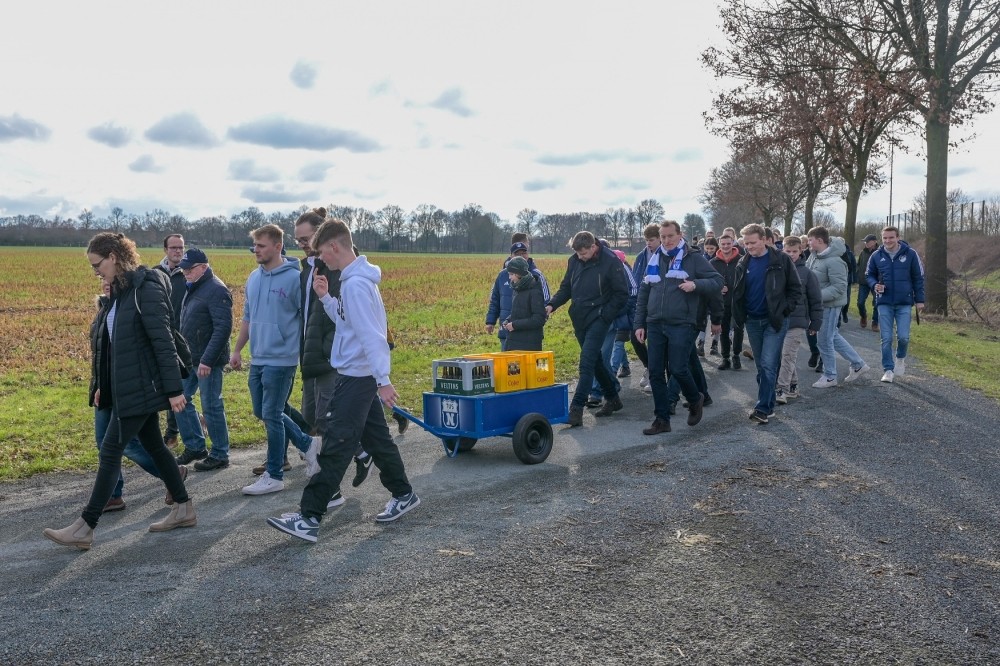 Das kam auch der Männer-Fußballmannschaft des TuS Neuenkirchen ganz gelegen. Ausgestattet mit einem Bollerwagen vollgepackt mit Getränken liefen sie die Strecke mit und versorgten die Wanderer gegen eine Spende mit einer kleinen Stärkung.