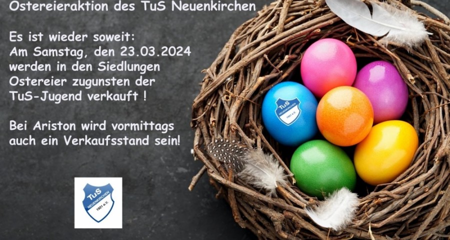 Am Samstag, den 23.03.2024 werden in den Siedlungen Ostereier zugunsten der TuS-Jugend verkauft!