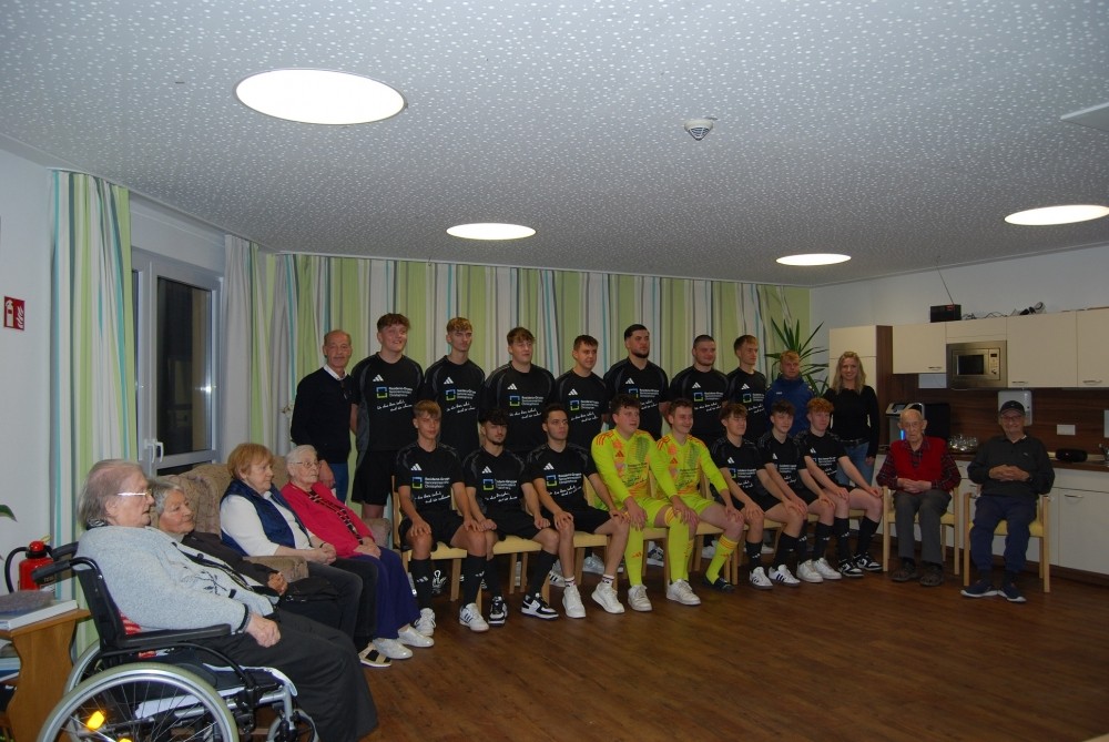 Die Seniorenresidenz Christophorus aus Neuenkirchen-Vörden hatte letzte Woche Besuch von den A-Jugendlichen unserer Jugendspielgemeinschaft. Die Residenz stattete das Team mit einem neuen Trikotsatz sowie Handtüchern aus. Nach dem Motto „Alt für Jung“ und „Jung für Alt“ entwickelten sich tolle Gespräche zwischen den Bewohnern und den Jugendlichen, für beide Seiten sicherlich eine ganz tolle Erfahrung. Die Mannschaft bedankt sich auf diesem Wege noch einmal herzlichst für die großzügige Unterstützung und für den schönen und unvergesslichen Aufenthalt in der Seniorenresidenz.