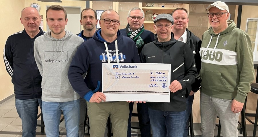750 Zuschauer sahen im Sommer im Pias-Sportpark, wie die Weisweiler-Elf mit einigen bekannten Ex-Profis der Gladbacher Borussia die Alten Herren des TuS Neuenkirchen mit 7:1-besiegte. Der Vorstand des Fanclubs um den Vorsitzenden Carsten Bye übergab den Verantwortlichen des TuS Neuenkirchen nun einen Scheck in Höhe von exakt 2.145,37 Euro.