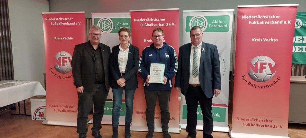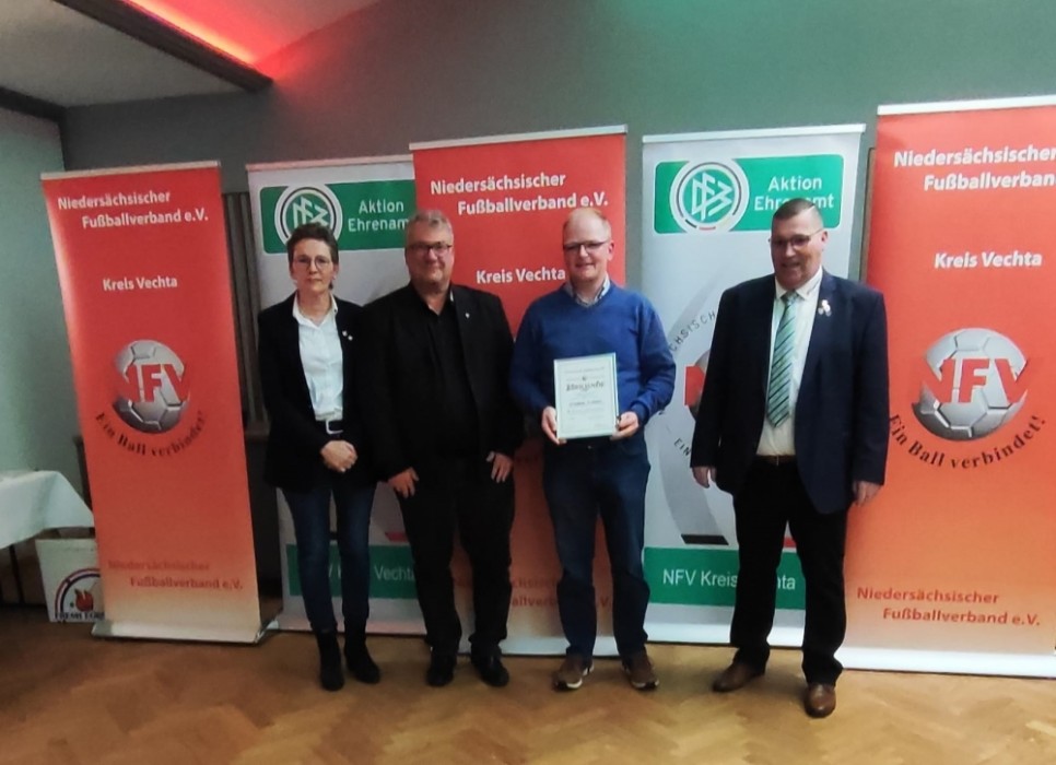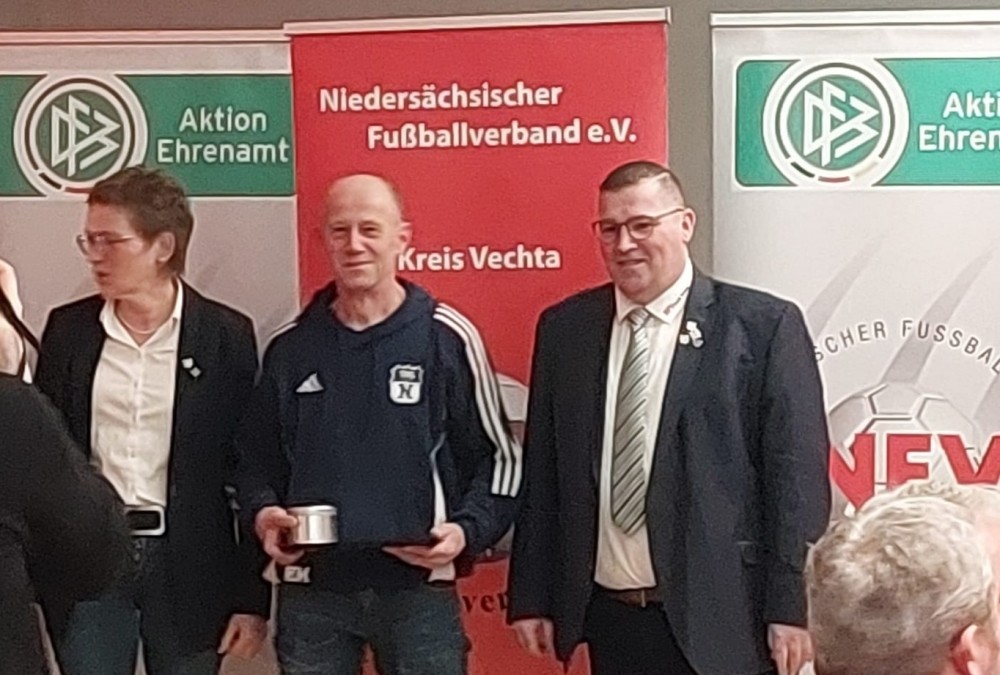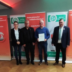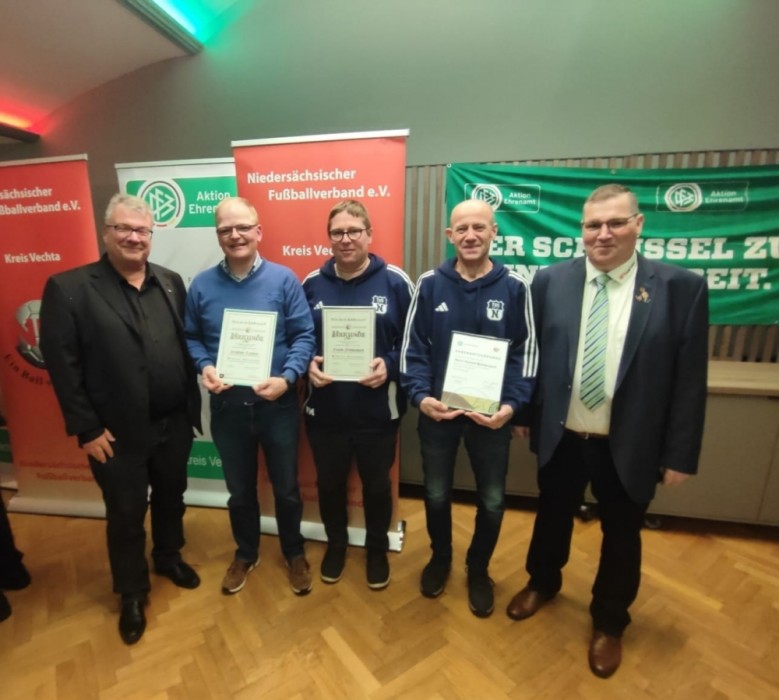 Beim diesjährigen Ehrenamtstag des NFV Kreis Vechta in Holdorf wurden drei verdiente Mitglieder des TuS Neuenkirchen geehrt. Hubert Middendorf erhielt die DFB-Ehrenamtsurkunde sowie eine DFB-Uhr. Mit der Silbernen Ehrennadel des NFV Kreis Vechta wurden Frank Middendorf und Stephan Krämer ausgezeichnet.