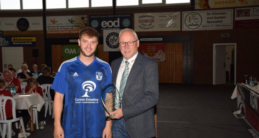 Beim Ehrungstag am vergangenen Wochenende in der Osterfeiner Sporthalle konnte stellvertretend für die Mannschaft Jonas Wolke-Hanenkamp die Trophäe aus den Händen von Staffelleiter Siegfried Lammers in Empfang nehmen.