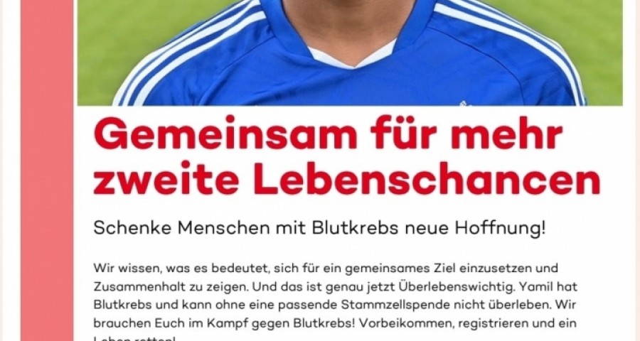 Wir wissen, was es bedeutet sich für ein gemeinsames Ziel einzusetzen und Zusammenhalt zu zeigen. Und das ist genau jetzt Überlebenswichtig. Yamil hat Blutkrebs und kann ohne eine passende Stammzellenspende nicht überleben. Wir brauchen Euch im Kampf gegen Blutkrebs! Vorbeikommen, registrieren und ein Leben retten!