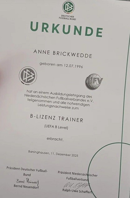 Der TuS Neuenkirchen gratuliert Anne Brickwedde herzlich zum Bestehen