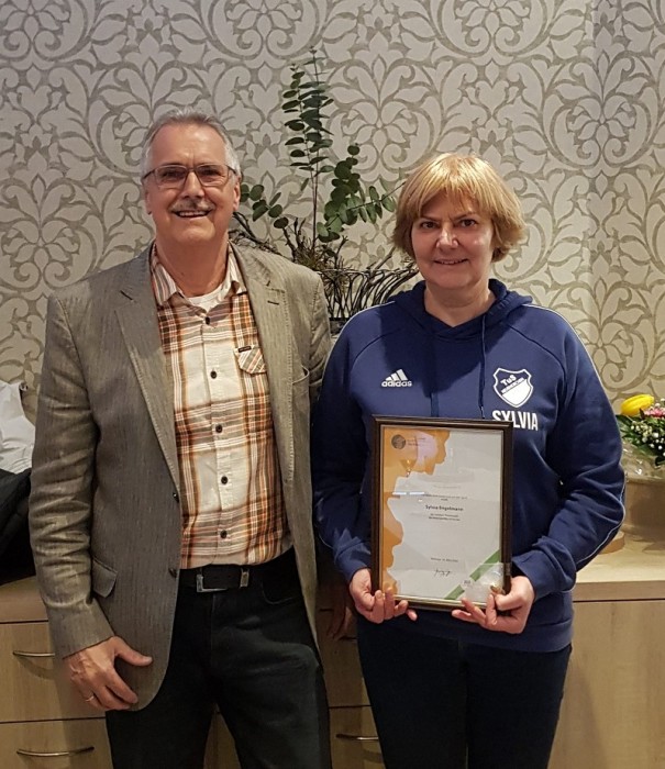 Sylvia Engelmann zog kurz vor der Jahrtausendwende von Osnabrück, wo sie schon als Übungsleiterin tätig war, ins beschauliche Neuenkirchen. Es gab erste Kontakte zum TuS, was ein großer Nachbarverein spitz kriegte. Sein Vorsitzender, eine Heimatsport-Ikone, wollte sie abwerben, bot dem Vernehmen nach sogar eine Stelle als Verkäuferin in seinem Geschäft an. Doch der TuS hängte bei der „Ablösesumme“ folgendes Preisschild drauf: „Unverkäuflich.“ Gut so. Seit dem Jahr 2000 bis heute ist sie Trainerin der Frauen-Fitnessgruppe, eine inklusive Gruppe. „Die Gruppe montags wäre nicht so lustig und fröhlich, wenn die Frauen aus der Heimstatt nicht dabei wären. Die sind so unbekümmert“, sagte sie einst zu dieser Inklusion pur. Seit 2015 ist Sylvia ebenfalls die Spartenleiterin Breitensport, dazu nimmt sie seit 2015 auch die Sportabzeichen ab. Außerdem koordiniert sie die Hallenzeiten, ist mit den Zugvögeln unterwegs. Und, und, und … Für dieses überragende Engagement erhielt sie völlig verdient die Goldene Ehrennadel des KSB Vechta.