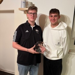 Nachdem Silas Messing, Leiter der Schiedsrichterabteilung, alle herzlich begrüßt hatte, ließ er die sehr positive, bald endende Saison noch einmal Revue passieren. Ein besonderes Highlight des Abends war die erstmalige Ehrung des „Schiedsrichters der Saison“. Der Titel ergab sich aus der Anzahl geleiteter Spiele sowie einer internen Abstimmung unter allen Aktiven. Noah übernahm in diesem Jahr die Ehrung und verkündete am frühen Abend das Ergebnis: