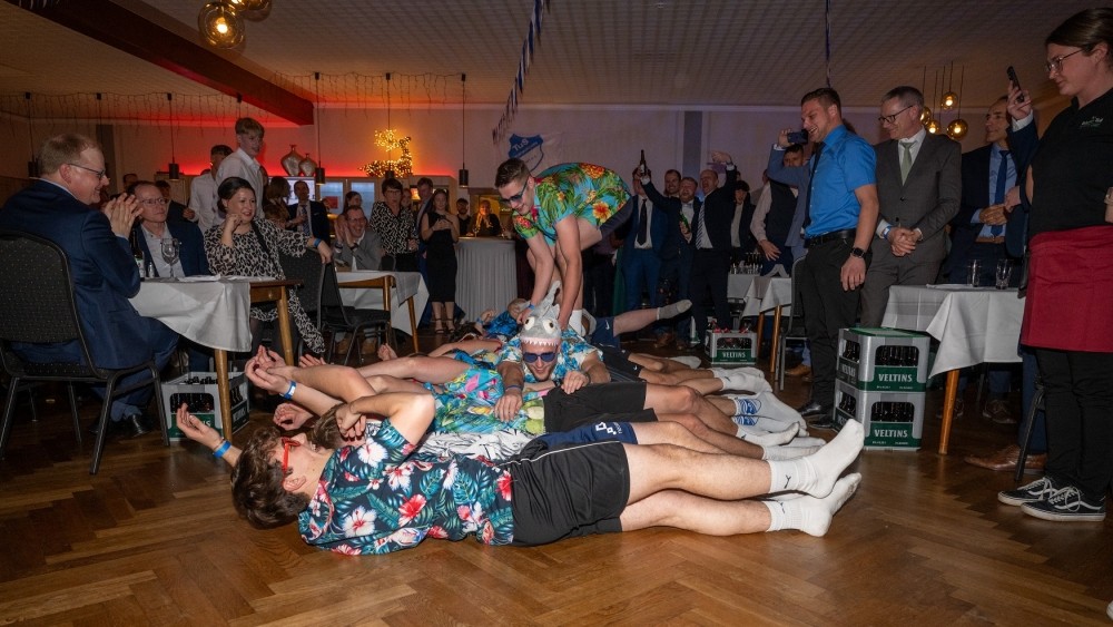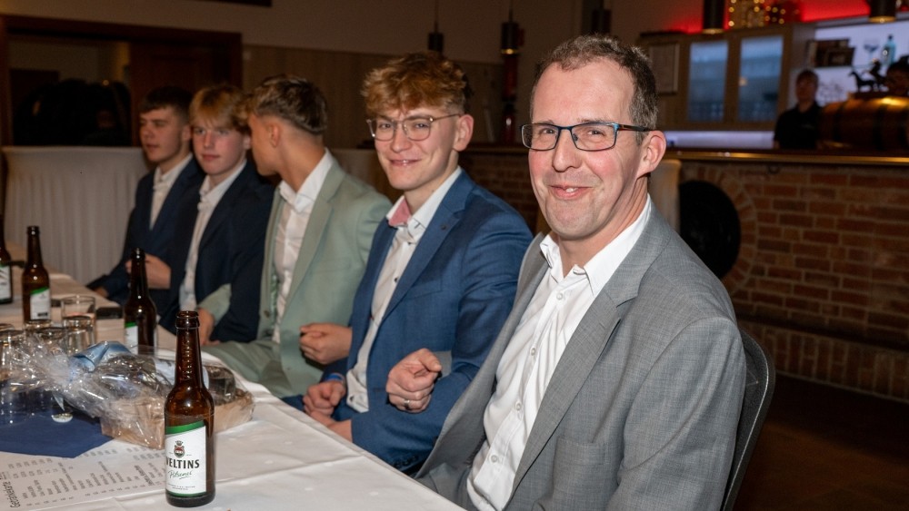 Frederik „Freddy“ Pohlmann wurde an diesen Abend gleich zweimal ausgezeichnet. Zum einen wurde der Kapitän der 1. Fußballherren für seine 25-jährige Vereinsmitgliedschaft ausgezeichnet. Zum anderen wurde er zum Sportler des Jahres 2025 gekürt. Andreas „Berry“ Berens beschrieb ihn in seiner Laudatio als