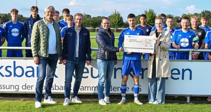 Ein sehenswerten Fallrückzieher des Fußballerspielers Yahya Yildiz während der Begegnung am 17. November 2024 gegen den TV Dinklage II in der 17. Minute zum 1:1 brachte den TuS-Kickern am Ende nicht nur einen 4:2-Sieg ein, sondern obendrauf gab es noch einen Scheck über 1000 Euro von der Volksbank Dammer Berge eG dazu.