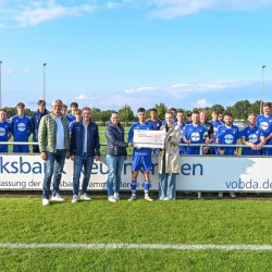 Ein sehenswerten Fallrückzieher des Fußballerspielers Yahya Yildiz während der Begegnung am 17. November 2024 gegen den TV Dinklage II in der 17. Minute zum 1:1 brachte den TuS-Kickern am Ende nicht nur einen 4:2-Sieg ein, sondern obendrauf gab es noch einen Scheck über 1000 Euro von der Volksbank Dammer Berge eG dazu.