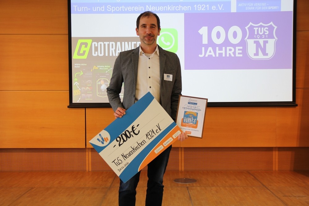 Freudig nahm unser Jugendleiter Sebastian Gude eine Urkunde und einen Scheck über 200,-€ für das Erreichen des 3.Platzes beim Vereinswettbewerb entgegen.
