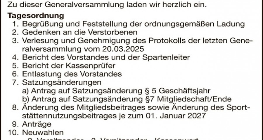 Einladung zur Generalversammlung 2026