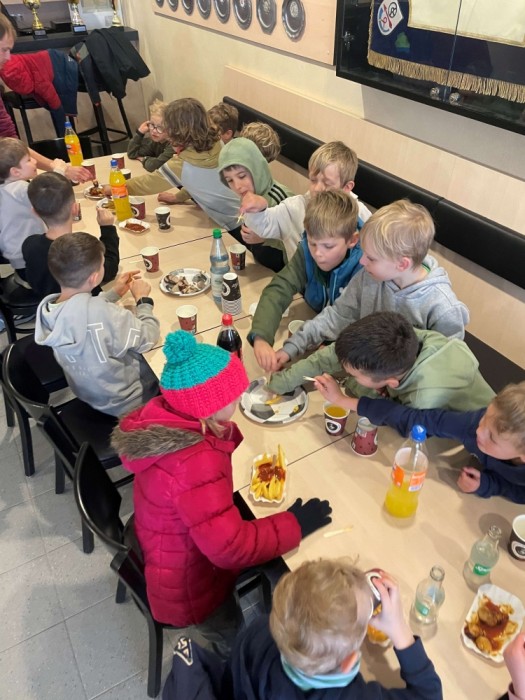 Zum gemeinsamen Abschluss versammelten sich alle Gruppen am Vereinsheim am Sportplatz. Dort sorgte Hexe mit Pommes, Currywurst und Eis für das leibliche Wohl und einen gelungenen Ausklang. Auch das eher mäßige Wetter konnte an der guten Stimmung nichts ändern. Ein toller gemeinsamer Abschluss.